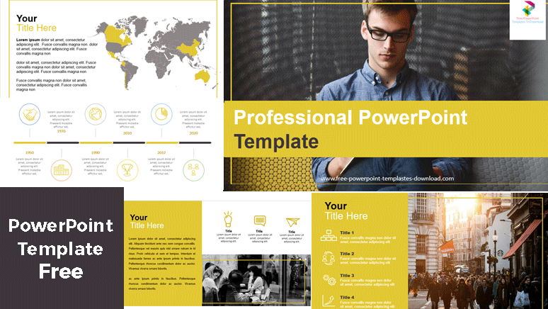 Download free Office PowerPoint Templates with a bold yellow and black design. Perfect for business plans, internal communications, or academic presentations. 100% editable.